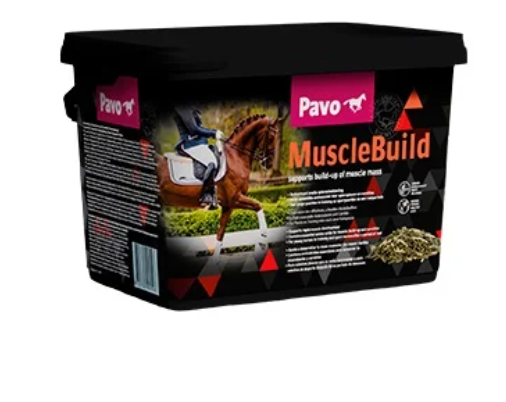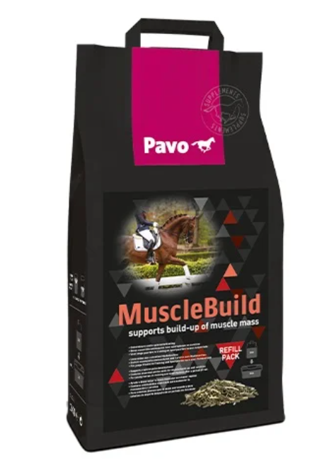 Om je paard een gespierder uiterlijk te geven, is het bijgeven van Pavo MuscleBuild alleen niet voldoende: er is training nodig om de spieren tot groei aan te zetten. Daarnaast moet het totale rantsoen voldoende eiwit bevatten, anders heeft het paard onvoldoende bouwstoffen voor de spierontwikkeling. In combinatie met goed ruwvoer en adequate training kun je over een periode van drie maanden met een dagelijkse toevoeging van Pavo MuscleBuild de spiermassa van je paard aanzienlijk opbouwen.