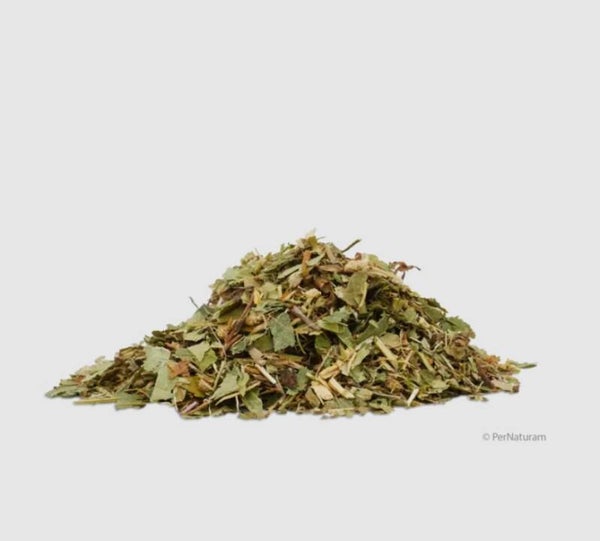 Berkenbladeren, elymus, orthosiphon, ereprijs, peterseliestengels, korhoenwortel.